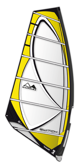 Although Super-X is no longer a PWA racing discipline, the excellent light wind speed and balance of the larger Switch, and the radical jumping and freestyle maneuvering of the smaller sails, has been further enhanced by continuing the pursuit of soft rig tension and a powerful twisted shape.